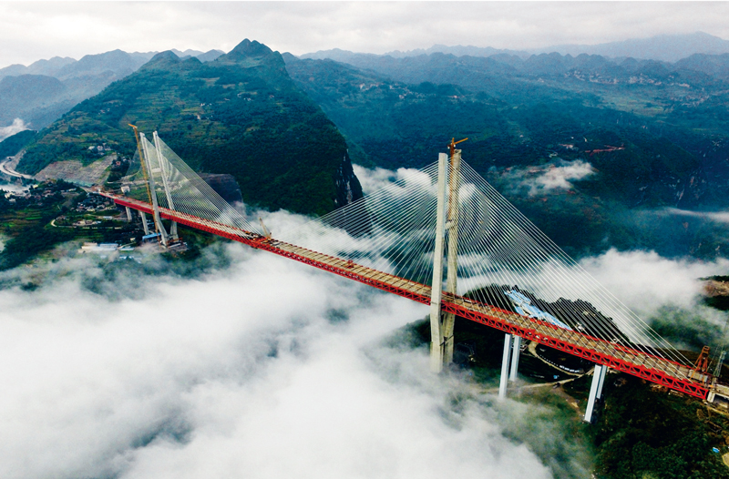 未來(lái)的路從腳下延伸。扶貧脫貧事業(yè)是一項(xiàng)長(zhǎng)期的歷史性任務(wù),沒(méi)有終點(diǎn),只有不斷開創(chuàng)的新起點(diǎn)。北盤江大橋是中國(guó)快速發(fā)展的一個(gè)縮影,它的建成極大改善了云貴地區(qū)的交通情況。圖為云端俯瞰的“世界最高橋”北盤江大橋。 吳東俊/攝
