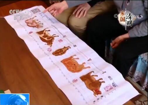 羅陽的媽媽 吳傳英:我(眼睛)不花。羅陽屬牛的,所以我想好吧,繡個(gè)五牛圖,他屬牛。很老實(shí),很忠厚。