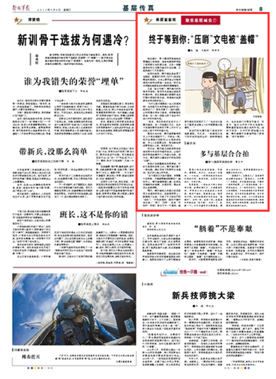 官兵們的吐槽引起了旅首長的高度重視。不久后,一份規(guī)范文電下發(fā)時間的細則出爐:除特殊情況外,機關各部門不得在節(jié)假日、休息日、每日20時后下發(fā)文電通知;要給基層留有處理文電的時間。細則下發(fā)后,文書們的煩惱隨之化解,闕天雄喜不自禁地哼起了那首歌:“終于等到你……”