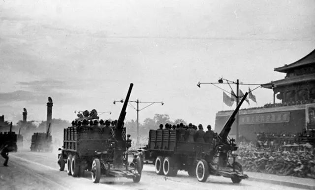1949年10月1日,中國人民解放軍高射炮部隊經(jīng)過天安門城樓。新華社記者宋貝珩攝(資料照片)