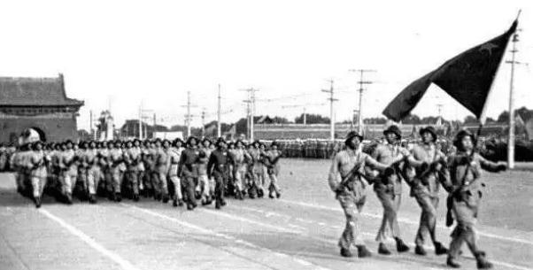 1949年10月1日開國大典閱兵是新中國成立后的第一次盛大閱兵,毛澤東主席等黨和國家領(lǐng)導(dǎo)人在天安門城樓檢閱了人民解放軍受閱部隊。受閱陸??杖姴筷?,共16400余人。
