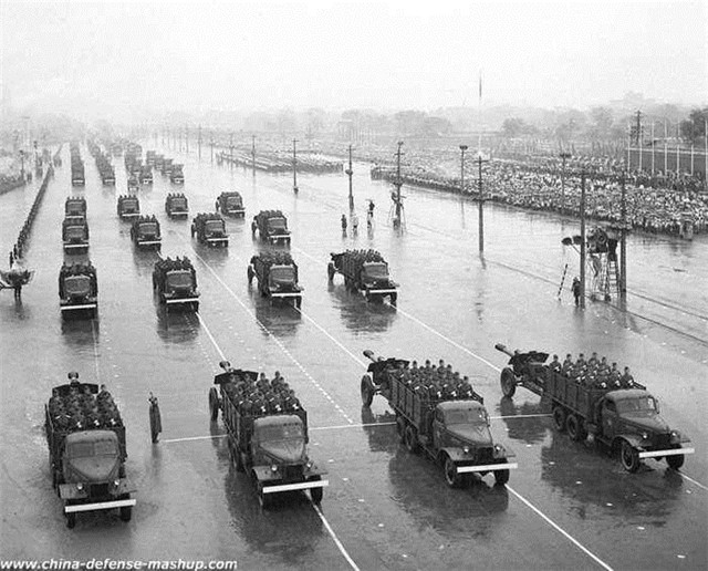 1956年,閱兵部隊(duì)乘坐的汽車是第一批出廠的國(guó)產(chǎn)解放牌汽車。