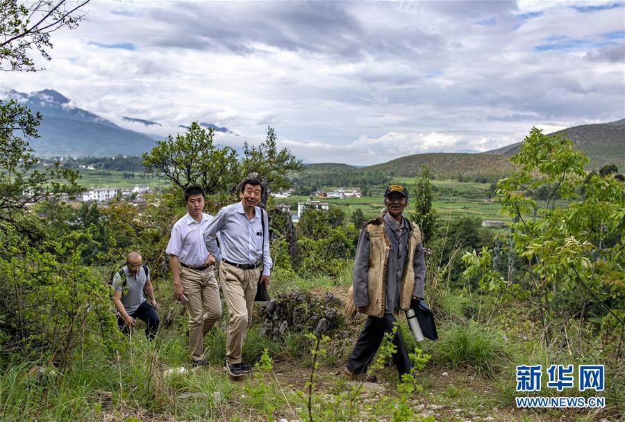 今年76歲的納西族老人和文戩(右一)領(lǐng)著記者沿著雨后泥濘的小路登山,他的叔叔當(dāng)年曾經(jīng)為紅軍做過向?qū)В?月20日攝)。 彩云之南,秀色麗江。在這座美麗古城大約800年的悠遠(yuǎn)歷史當(dāng)中,有一段80余年前的紅色記憶,令人銘記至今。 新華社記者 江文耀 攝