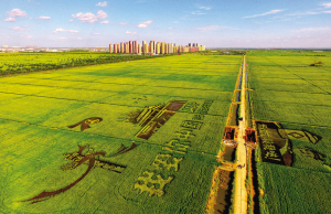 天津市西青區(qū)王穩(wěn)莊鎮(zhèn)稻農(nóng)采用不同品種種植以及修剪、堆砌等方法,在稻田中“繪制”出多幅巨型稻田畫,每幅畫的面積都達(dá)到了數(shù)十畝,全部為愛祖國或慶豐收主題,迎接即將到來的國慶和豐收節(jié),同時(shí)表達(dá)自己對偉大祖國的祝福與美好生活的感恩。
