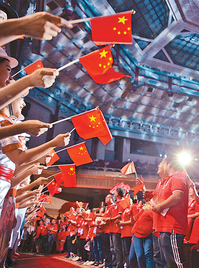 9月7日,來自廣州、澳門和香港的大灣區(qū)職工代表揮舞國旗,以文藝匯演的方式迎接國慶。當日下午,由廣東省總工會、香港工會聯(lián)合會、澳門工會聯(lián)合總會聯(lián)合主辦的大灣區(qū)職工慶祝中華人民共和國成立70周年暨澳門特別行政區(qū)成立20周年文藝匯演在廣州中山紀念堂舉行。