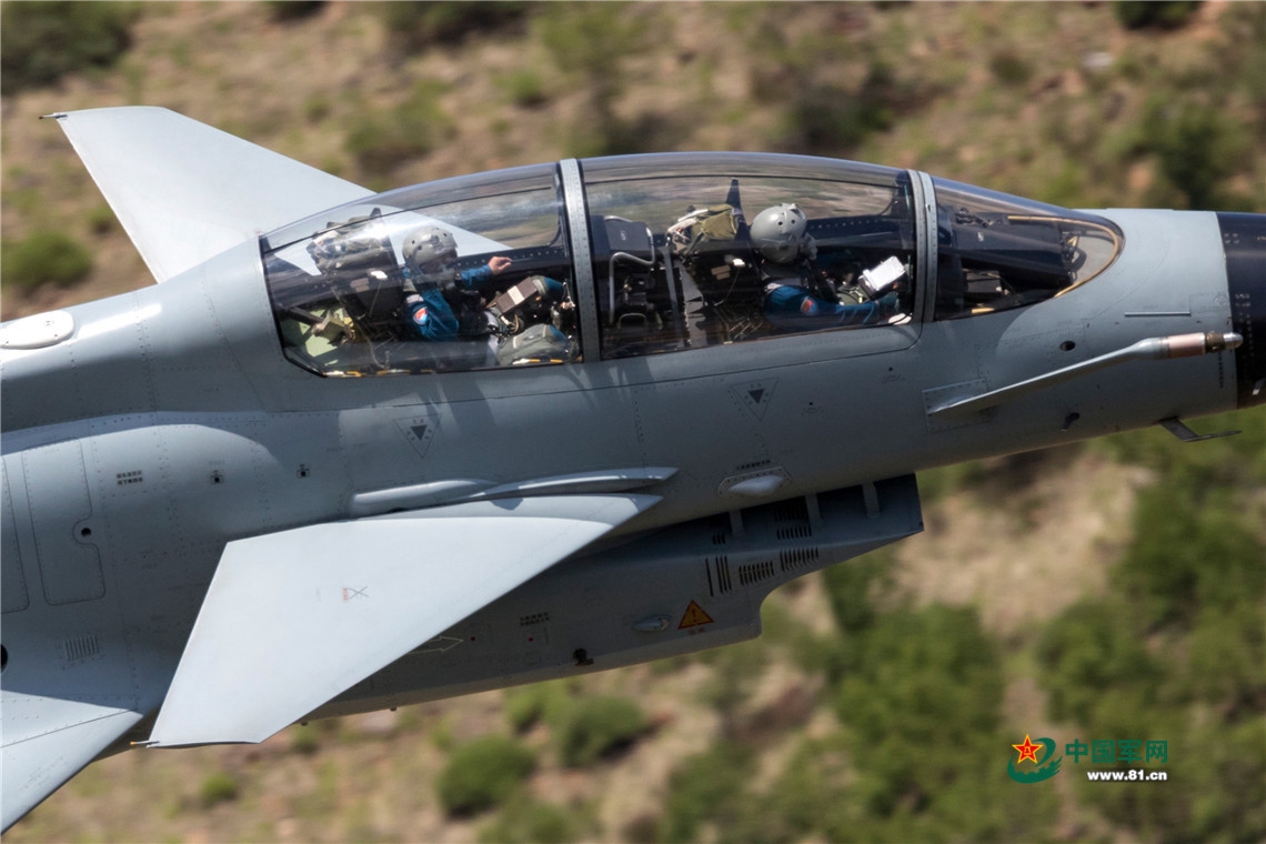 飛行員駕駛戰(zhàn)機超低空高速通過山谷。楊盼 攝