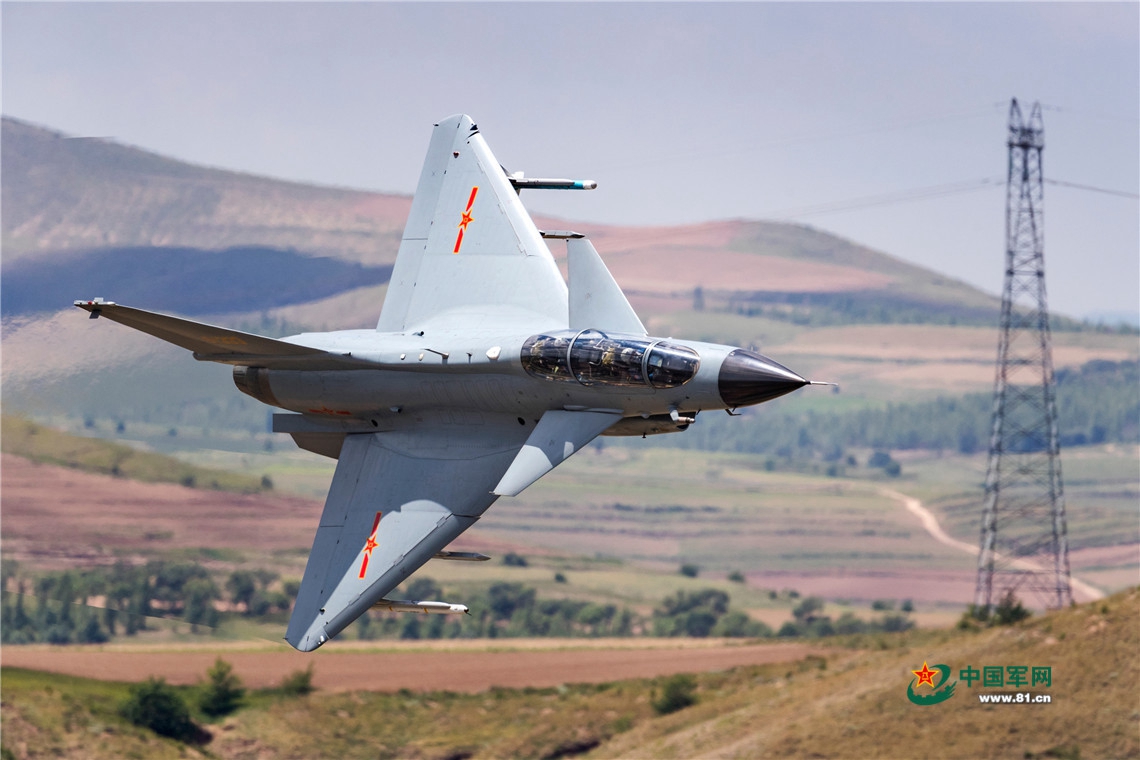 飛行員駕駛戰(zhàn)機超低空高速通過山谷。楊盼 攝