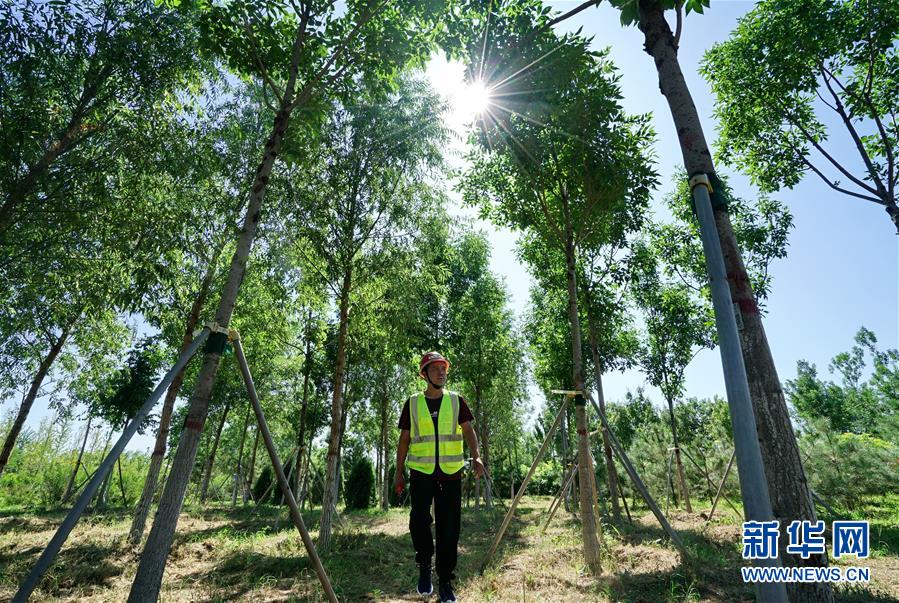 護(hù)林員高建勛在雄安新區(qū)“千年秀林”內(nèi)巡視(8月29日攝)。 新華社記者 牟宇 攝