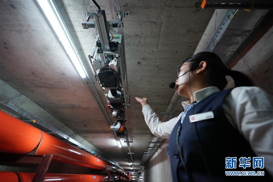 8月30日,工作人員在介紹雄安新區(qū)市民服務(wù)中心的地下管廊。 新華社記者 邢廣利 攝