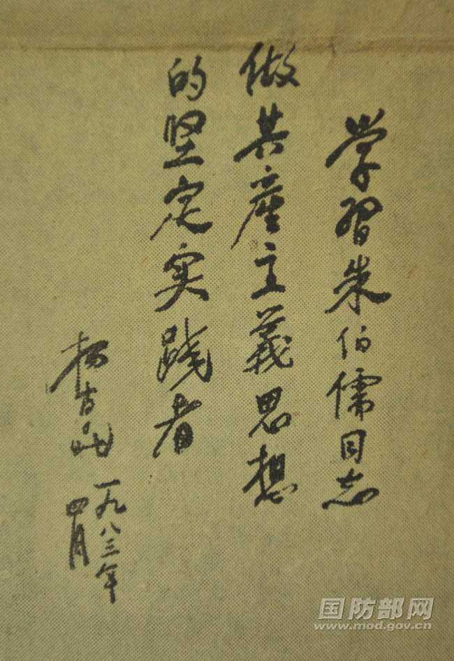 楊尚昆題詞:“學(xué)習(xí)朱伯儒同志 做共產(chǎn)主義思想的堅(jiān)定實(shí)踐者”。(
