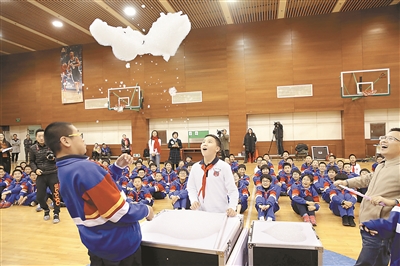 2017年11月13日,北京市第五中學(xué)分校和國子監(jiān)中學(xué)舉辦以“傳承、創(chuàng)新、體驗、成長”為主題的科學(xué)嘉年華活動,學(xué)生們參與了造云工程師、鉆木取火、水發(fā)火箭、建筑模型搭建、變臉機器人等20多個項目,在快樂中體驗科學(xué)的魅力。圖為當(dāng)日,學(xué)生們進行“造云工程師”科學(xué)實驗。新華社發(fā)(周良 攝)