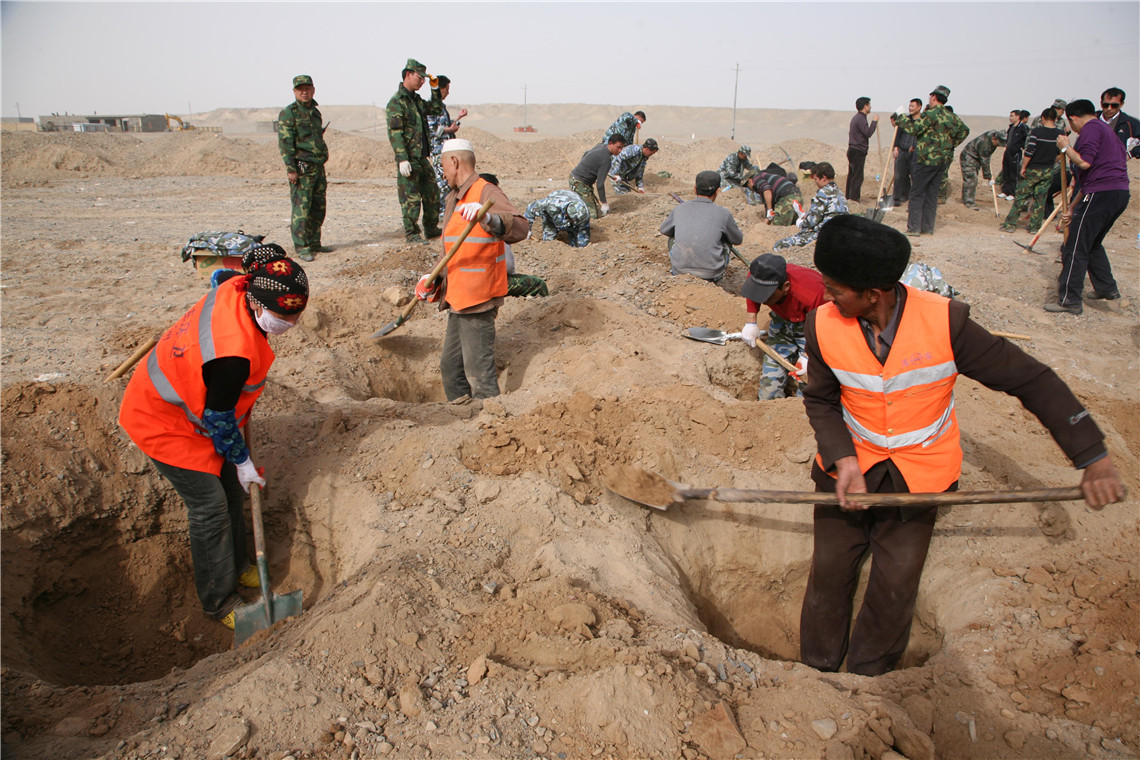 當(dāng)日,位于塔克拉瑪干沙漠北緣的新疆庫車縣各族居民、駐軍部隊等萬余人在即將通車的國道314線過境公路兩側(cè)植樹造林,綠化家園。據(jù)了解,庫車縣今年將發(fā)動社會力量,植樹造林3.5萬畝。