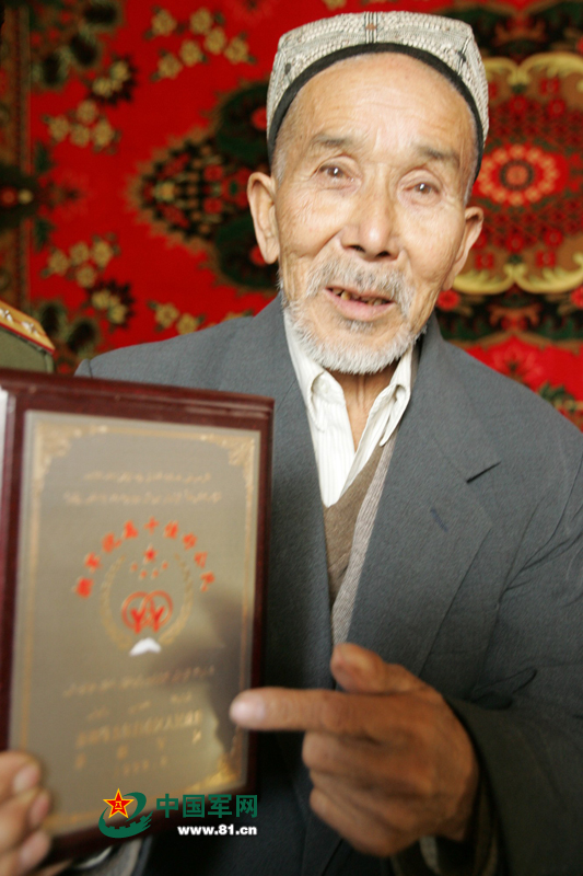 12月3日,全國(guó)“愛(ài)國(guó)擁軍模范”卡德?tīng)枴ぐ涂嗽趲?kù)車(chē)縣欄桿村逝世,終年84歲。圖為全國(guó)“愛(ài)國(guó)擁軍模范”卡德?tīng)枴ぐ涂?。?005年12月15日,阿丑攝)