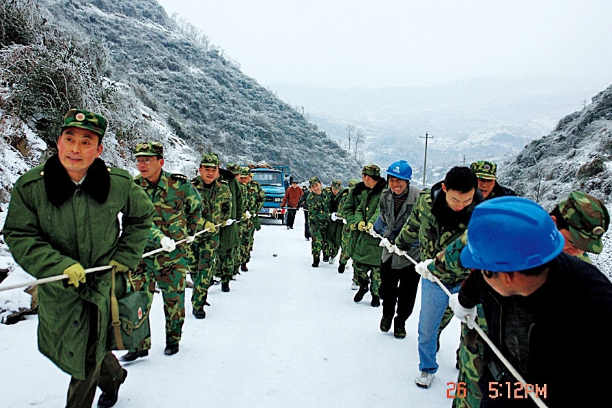 眾志成城、團結(jié)一心抗冰雪災(zāi)害。攝影林發(fā)勇