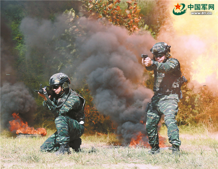 魯憲甫(右一)帶領(lǐng)官兵進行抵近射擊訓(xùn)練。