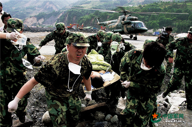 解放軍和武警部隊共出動兵力14.6萬余人,民兵預(yù)備役人員7.5萬人,動用各型飛機和直升機4700余架次,車輛53.3萬臺次,救出生還者3338人,轉(zhuǎn)移受困群眾140萬人,運送和空運空投救災(zāi)物資157.4萬噸。派出210支醫(yī)療隊、心理救援隊和衛(wèi)生防疫隊,巡診醫(yī)治受傷群眾136.7萬人。災(zāi)情過后,各部隊踴躍捐款捐物救助受災(zāi)群眾,并派出人員、車輛、機械和醫(yī)療隊幫助災(zāi)區(qū)重建,為奪取抗震救災(zāi)勝利發(fā)揮了中流砥柱的作用。