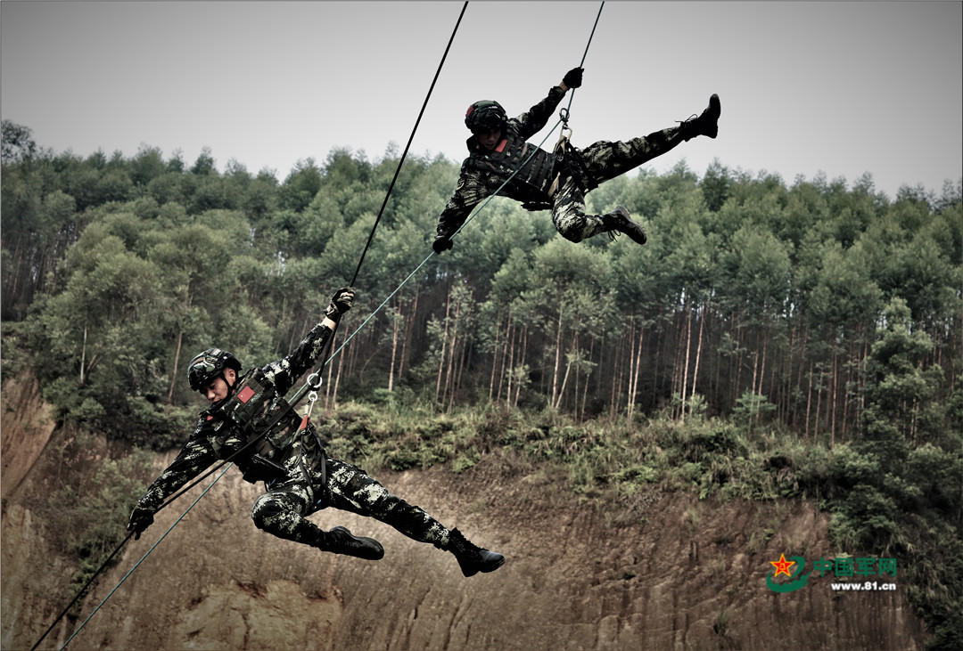 武警特戰(zhàn)隊(duì)員攀登訓(xùn)練。