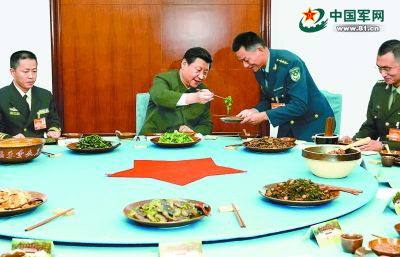有這樣一個場景,印刻在全軍將士心頭:2014年10月31日,古田全軍政治工作會議期間,習(xí)主席與參加會議的代表同吃“紅軍飯”,勉勵大家保持老紅軍本色。那天的“紅米飯、南瓜湯”從歷史深處走來,走進當代革命軍人心間,見證了習(xí)主席對人民軍隊優(yōu)良傳統(tǒng)的躬身傳承。