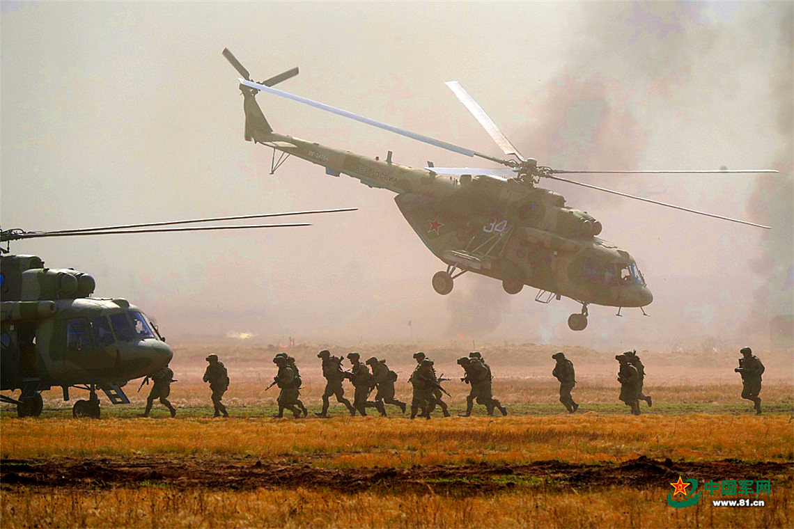 俄軍直升機(jī)快速收攏轉(zhuǎn)移武裝力量。
