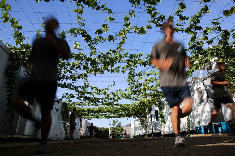 11月15日,在南蘇丹首都朱巴的中國維和步兵營營區(qū),官兵們進(jìn)行體能訓(xùn)練。