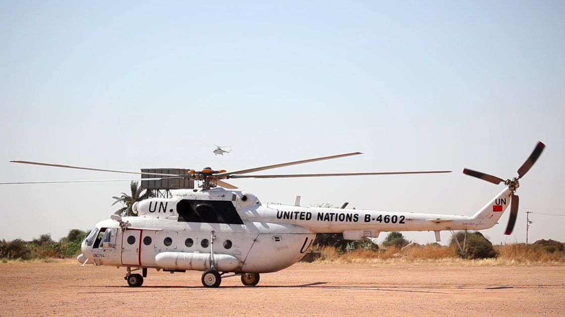 這是2019年1月3日,在蘇丹北達爾富爾州法希爾機場,中國第二批赴蘇丹達爾富爾維和直升機分隊直升機準備起飛。新華社發(fā)