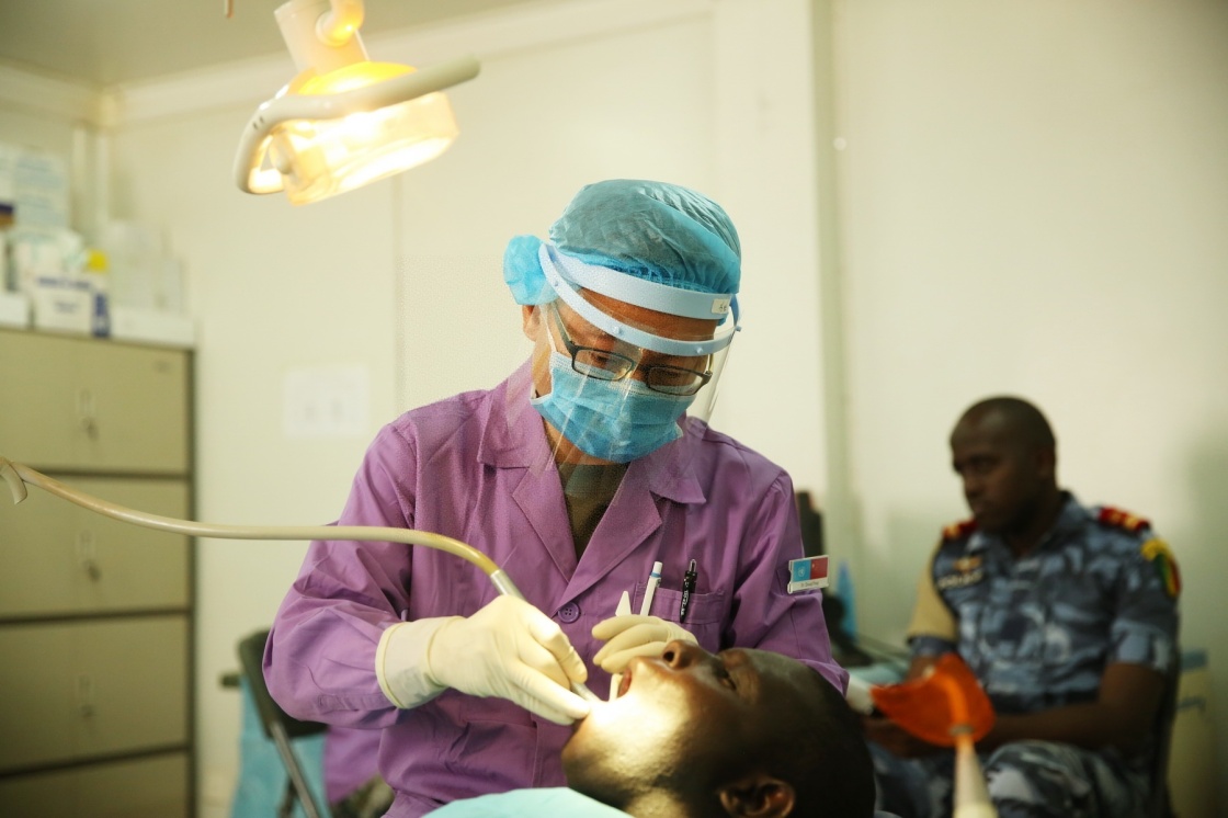 這是2016年6月15日,在馬里加奧的聯(lián)合國馬里穩(wěn)定團(tuán)中國二級醫(yī)院,中國維和醫(yī)療隊員為患者治療。新華社發(fā)(趙子權(quán)攝)