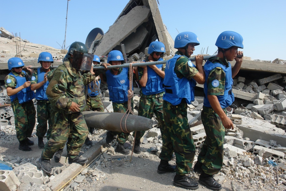 這張未注明拍攝日期的資料照片顯示的是中國(guó)維和部隊(duì)官兵在黎巴嫩南部轉(zhuǎn)移未爆航彈。新華社發(fā)