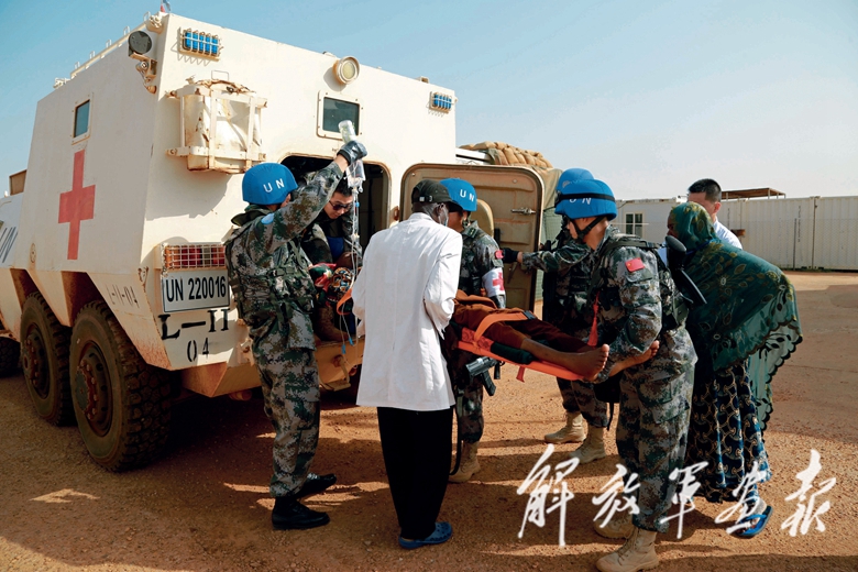 我維和醫(yī)療分隊(duì)對(duì)一名患低鉀血癥的聯(lián)合國(guó)當(dāng)?shù)毓蛦T進(jìn)行緊急救治。