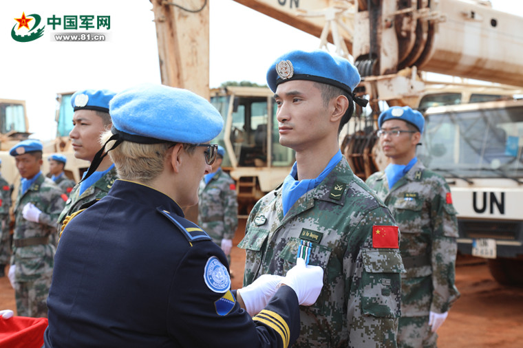 當(dāng)?shù)貢r(shí)間2018年7月26日上午,中國第八批赴南蘇丹維和醫(yī)療分隊(duì)63名官兵在南蘇丹瓦烏被授予聯(lián)合國“和平榮譽(yù)勛章”。聯(lián)南蘇團(tuán)總司令弗蘭克中將出席授勛儀式,祝賀中國維和官兵光榮授勛,并對(duì)部隊(duì)取得的突出成績給予高度評(píng)價(jià),對(duì)官兵為南蘇丹和平建設(shè)做出的卓越貢獻(xiàn)表示誠摯感謝。