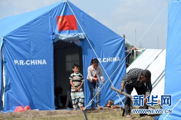 5月2日,在尼泊爾加德滿都市區(qū)的一個(gè)災(zāi)民安置點(diǎn),中國(guó)政府援助的救災(zāi)帳篷為受災(zāi)群眾提供了安身之所。 新華社記者 秦晴 攝