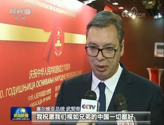 21日,中國(guó)駐塞爾維亞使館舉辦主題為“鋼鐵友誼 共創(chuàng)繁榮”的國(guó)慶70周年招待會(huì)。塞爾維亞總統(tǒng)武契奇參加了招待會(huì),并發(fā)表致辭高度評(píng)價(jià)中國(guó)的發(fā)展成就,感謝中方“一帶一路”倡議等給塞爾維亞帶來的發(fā)展機(jī)遇。他對(duì)中華人民共和國(guó)成立70周年表示衷心祝賀。