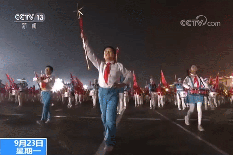 夜幕下的天安門廣場燈火輝煌、氣氛熱烈。在雄壯的軍樂聲中,在嘹亮的口號聲中,在觀眾熱烈的掌聲中,受閱部隊重點進行了閱兵式、分列式演練。隨后,各界群眾游行隊伍依次走過,全裝彩車首次亮相,處處洋溢著歡樂喜慶、昂揚奮進的精氣神。聯(lián)歡活動在22日晚進行演練,首次增加煙花部分燃放任務(wù),多個表演區(qū)塊各具特色又渾然一體,廣場上唱響盛世歡歌。