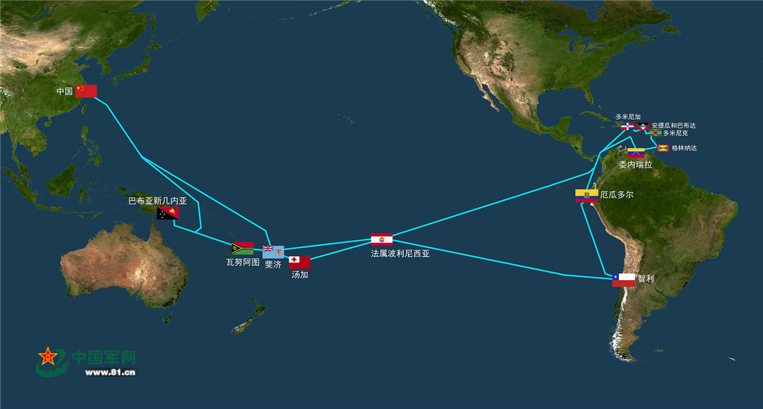 這是和平方舟執(zhí)行“和諧使命—2018”任務(wù)和參加智利海軍成立200周年紀(jì)念活動(dòng)航跡示意圖。同一個(gè)世界,同一個(gè)家園。和平方舟將大洋兩岸緊緊相連,浩瀚的太平洋不再遙遠(yuǎn)。