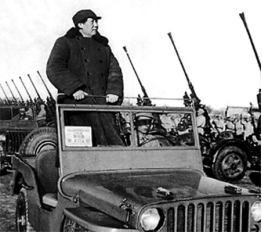 1949年3月25日,毛澤東在北京西苑機(jī)場(chǎng)檢閱人民解放軍部隊(duì)。
