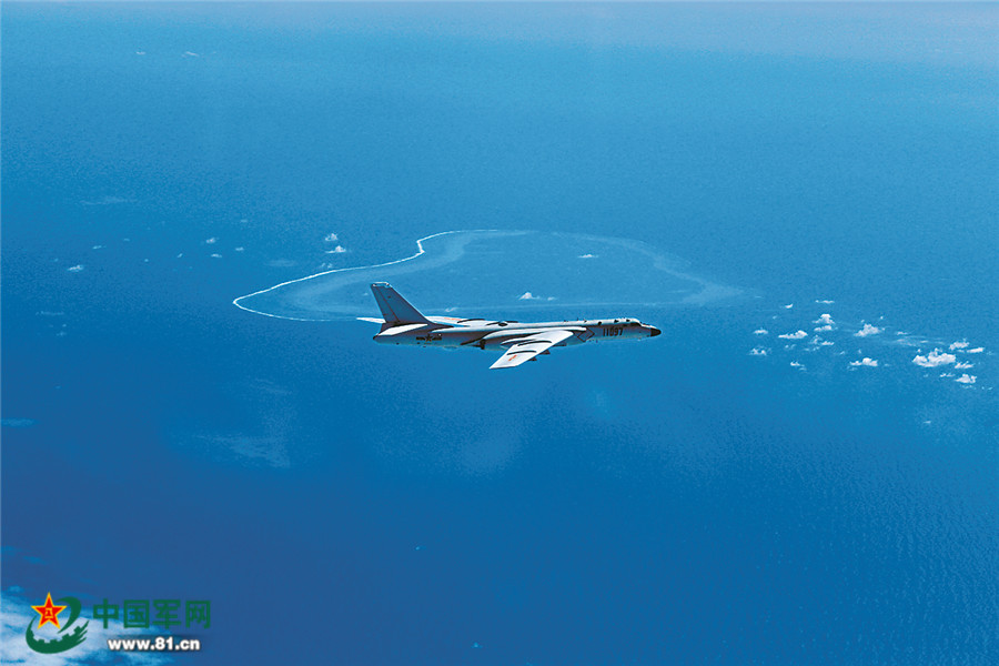 2016年7月,空軍轟-6K南海戰(zhàn)巡飛越黃巖島。劉 銳攝