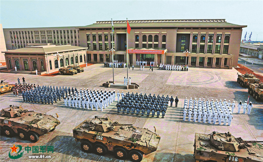 2017年8月1日,中國(guó)人民解放軍駐吉布提保障基地部隊(duì)舉行進(jìn)駐營(yíng)區(qū)儀式。趙長(zhǎng)宏攝