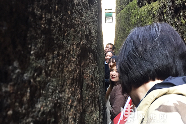 采訪團(tuán)穿梭“一線天”景點(diǎn)。東北網(wǎng)記者 霍梟涵 攝