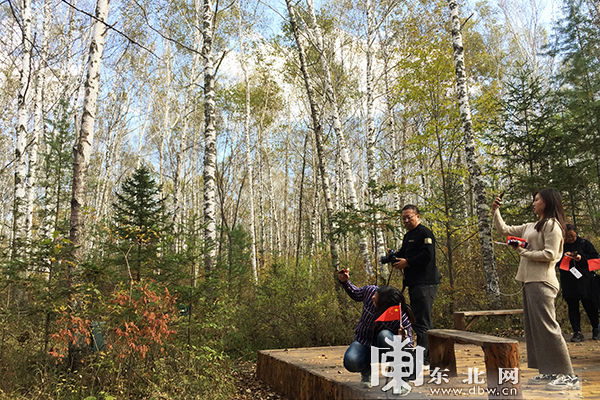 采訪團(tuán)拍攝小興安嶺秋日美景。東北網(wǎng)記者 霍梟涵 攝