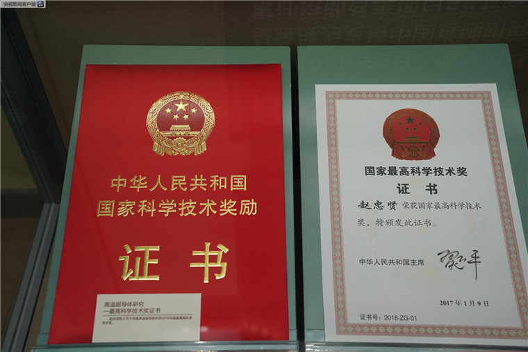2017年1月,趙忠賢獲得國家最高科技獎(jiǎng)。這是獲獎(jiǎng)證書。