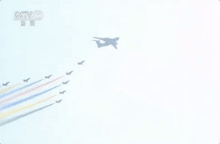 運(yùn)用直升機(jī)編組字樣、飛機(jī)噴拉彩煙、空地旗幟展示等形式,寓意在偉大、光榮、正確的中國共產(chǎn)黨堅強(qiáng)領(lǐng)導(dǎo)下,新中國建設(shè)發(fā)展走過的70年輝煌歷程,人民軍隊現(xiàn)代化建設(shè)取得的歷史性成就。