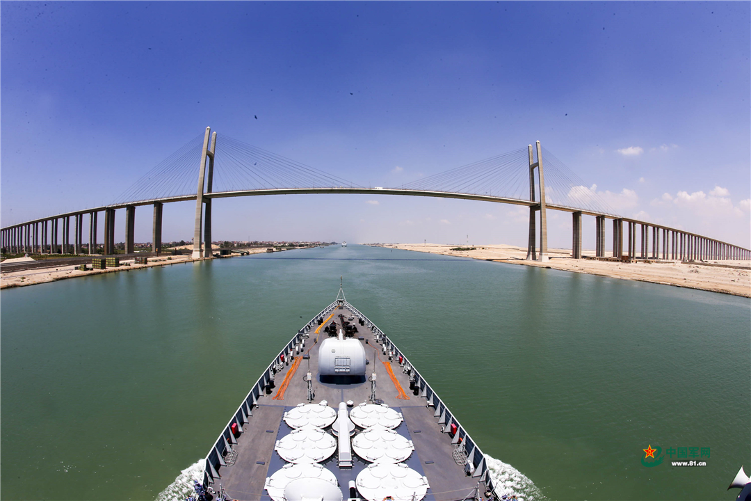 中國(guó)海軍第20批護(hù)航編隊(duì)濟(jì)南艦航經(jīng)坎塔拉大橋。代宗鋒 攝