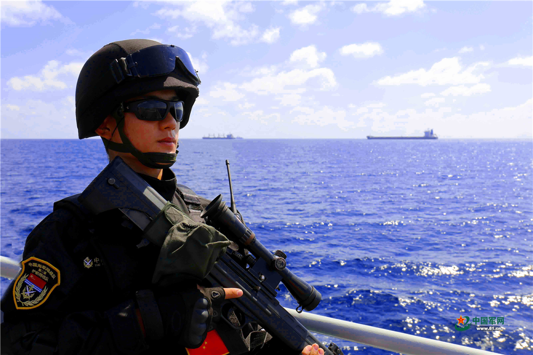 中國海軍第28批護(hù)航編隊特戰(zhàn)隊員正高度戒備。王游 攝