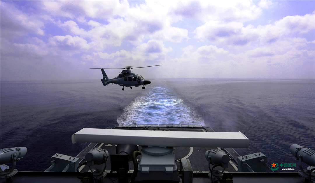 中國海軍第28批護(hù)航編隊直升機空中飛行訓(xùn)練。朱林林 攝