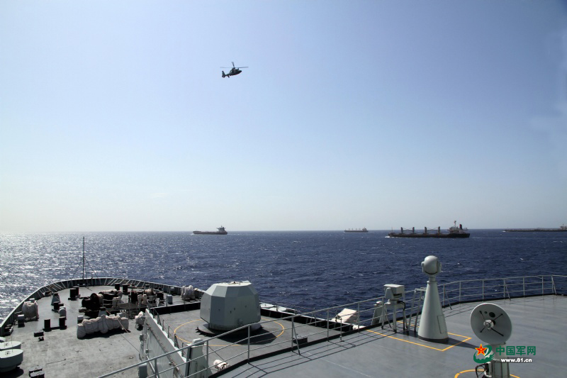 中國(guó)海軍第6批護(hù)航編隊(duì)在護(hù)航中。鐘魁潤(rùn) 攝