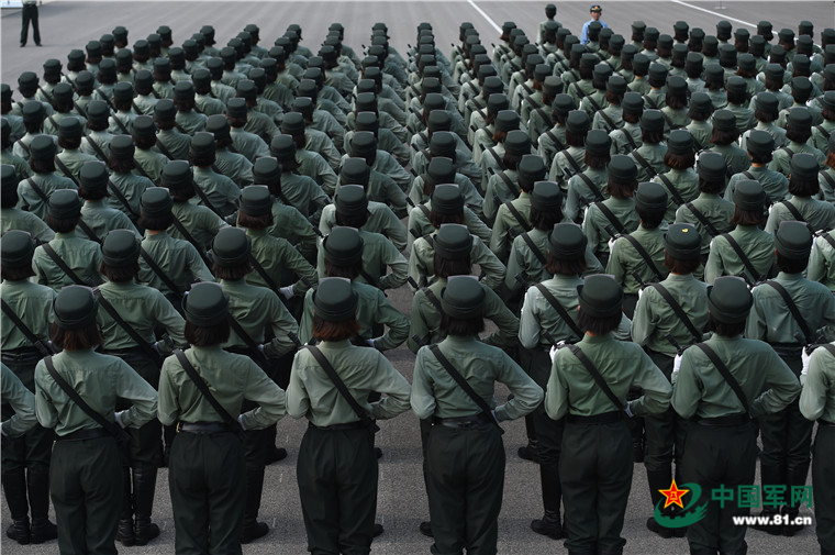 女兵隊(duì)員進(jìn)行方隊(duì)合成訓(xùn)練。她們雙目炯炯,眉宇間透著的那股英氣,神情中散發(fā)的那種自豪,讓人記憶深刻。