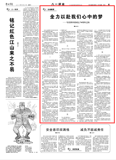請關(guān)注今日《解放軍報(bào)》的文章——
