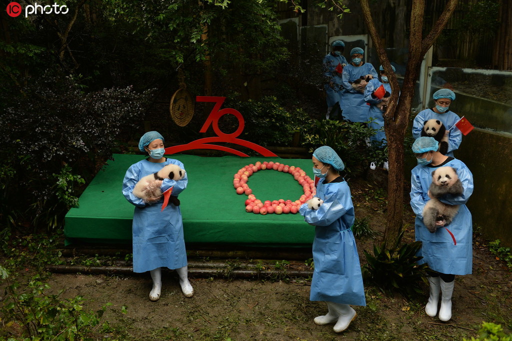 迎國慶|7只新生大熊貓拼出“70”圖案
