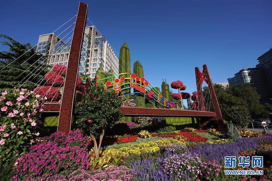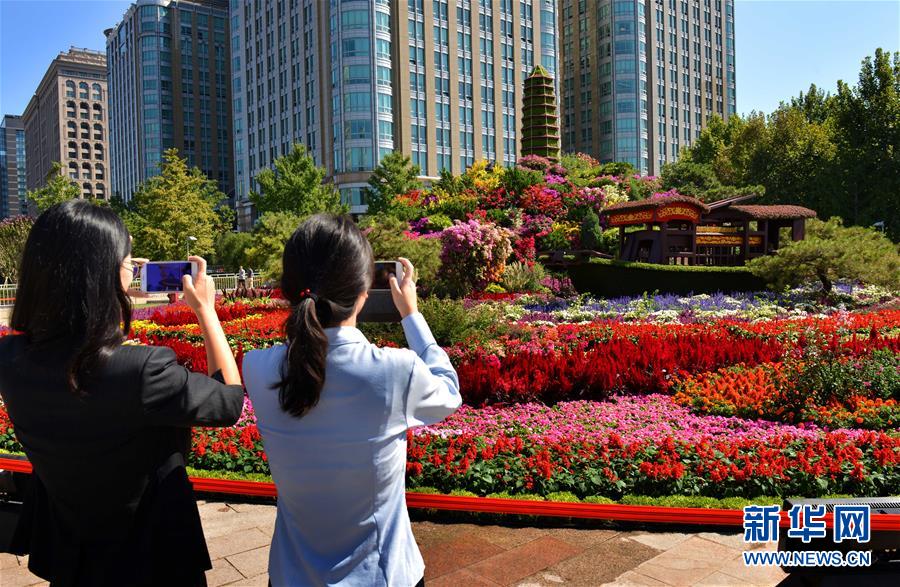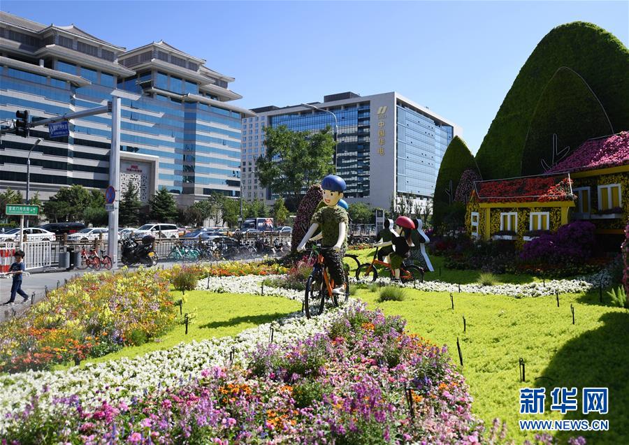9月23日拍攝的位于西單東南角的“文明之路”花壇。新華社記者 張晨霖 攝