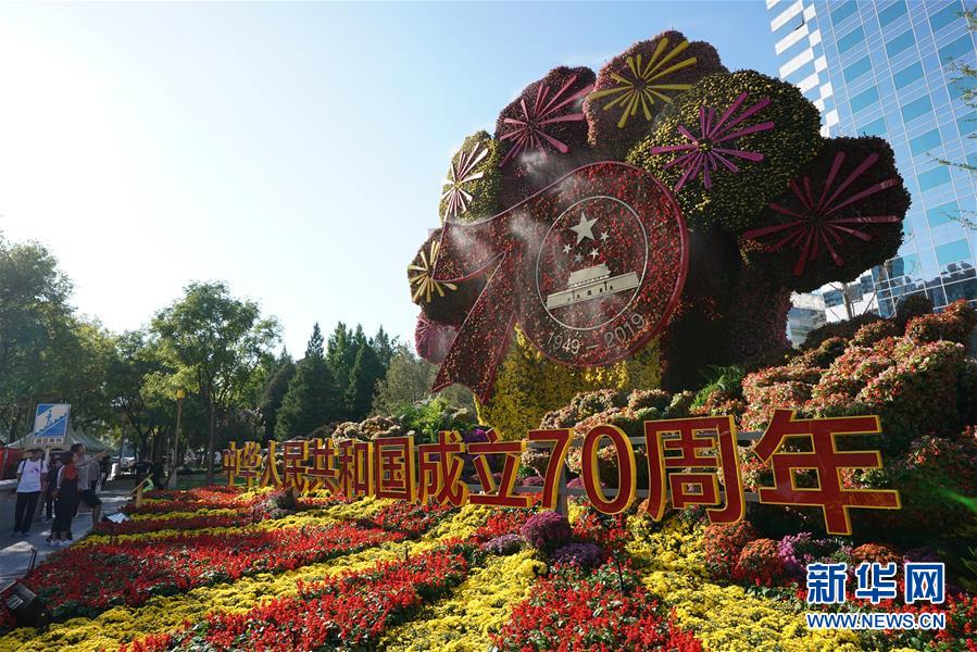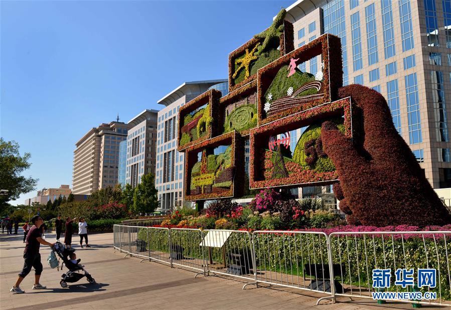 9月23日,市民在建國門西北角觀賞“壯麗70年”花壇。 新華社記者鞠煥宗 攝