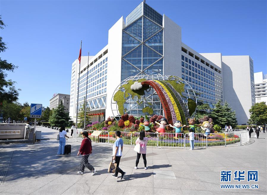 9月23日拍攝的位于西單西北角的“命運(yùn)共同體”花壇。新華社記者 張晨霖 攝